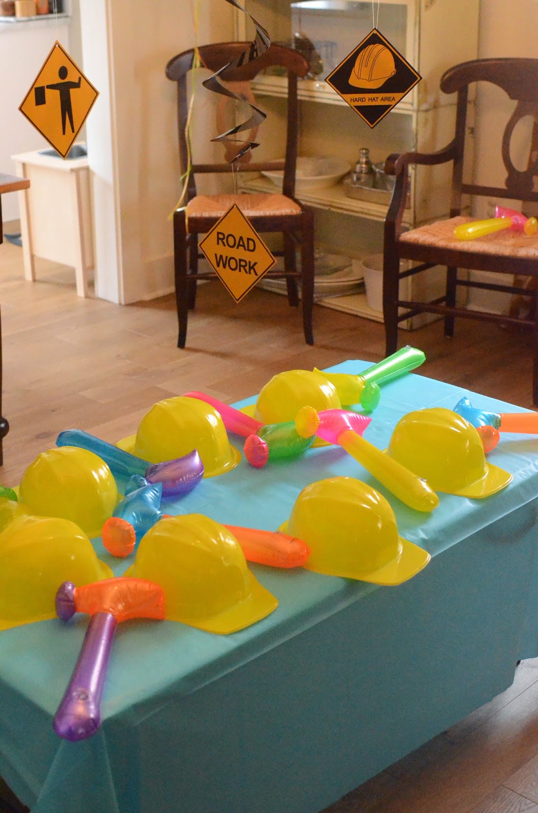 Games: Each kiddo got a yellow construction helmet, and we had a plethora of stickers for them to customize their own hat. We also had these inflatable hammers which were a huge hit--and nothing got broken or bruised! Bonus.
